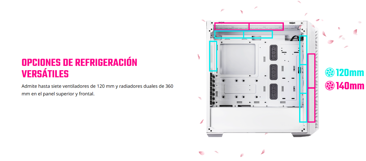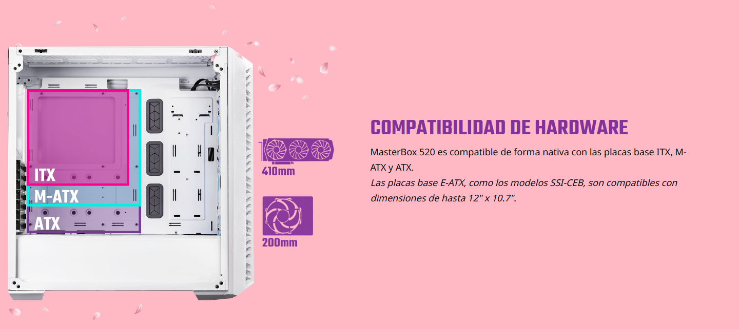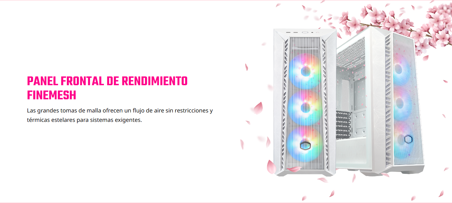 - MasterBox 520 Mesh Sakura es el chasis ideal para satisfacer las necesidades tanto de jugadores novatos como experimentados… Ahora infundido con la gracia de Sakura