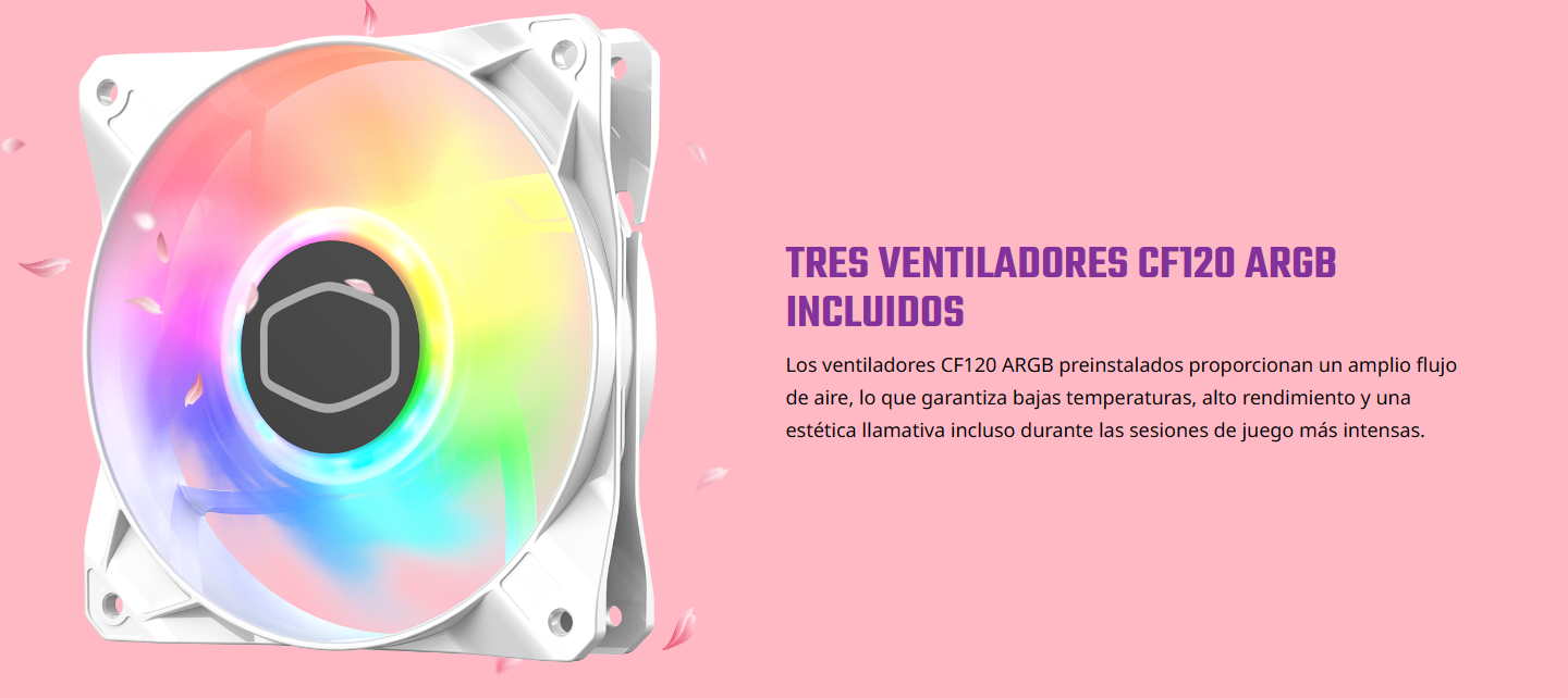 - Tres ventiladores CF120 ARGB incluidos