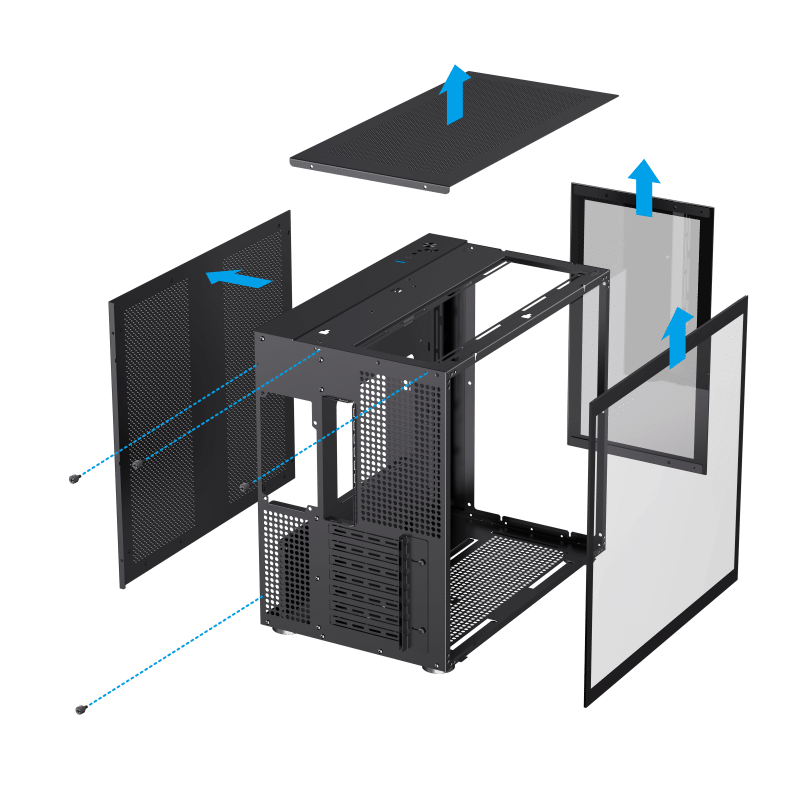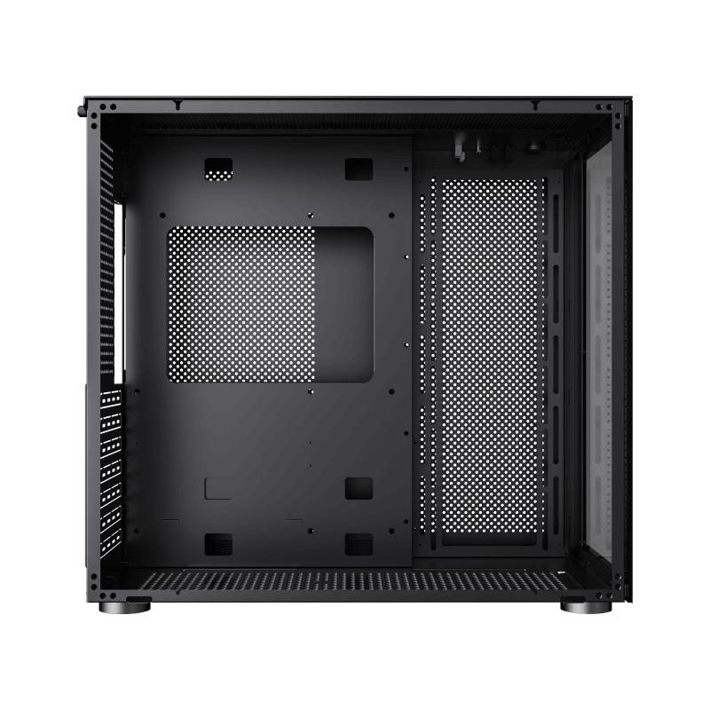 Más grande en todos los sentidos, un chasis tremendamente potente. Flexibilidad de diseño modular para cualquier configuración. unidades más ricas. espacioso para componentes múltiples y más grandes. Compatible perfectamente con la sincronización de iluminación RGB direccionable del panel frontal de las placas base ATX.